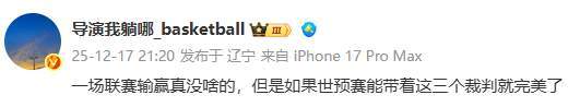 而辽宁媒体人导演我躺哪更是直言,“一场联赛输赢真没啥的,但是如果世预赛能带着这三个裁判就完美了”。但愿郭士强能看到吧,做做篮协的工作,带上自家裁判,也挺好!